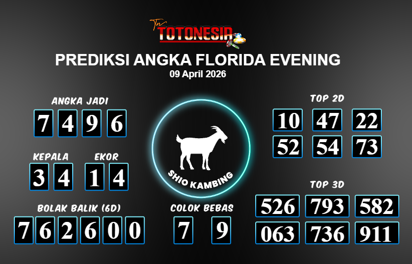 Toto Nesia : Bocoran Prediksi Togel FLORIDA EVENING Tanggal 09 APRIL 2026