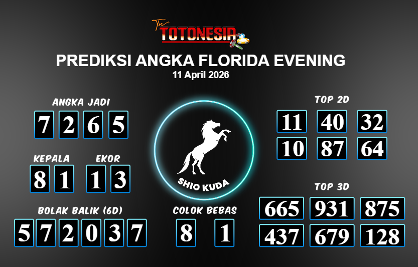 Toto Nesia : Bocoran Prediksi Togel FLORIDA EVENING Tanggal 11 APRIL 2026