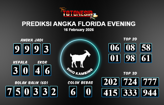Toto Nesia : Bocoran Prediksi Togel FLORIDA EVENING Tanggal 16 FEBUARI 2026