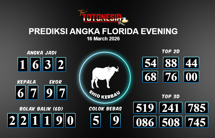 Toto Nesia : Bocoran Prediksi Togel FLORIDA EVENING Tanggal 16 MARET 2026