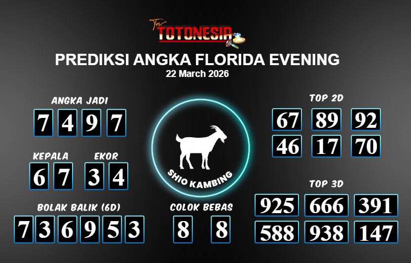 Toto Nesia : Bocoran Prediksi Togel FLORIDA EVENING Tanggal 22 MARET 2026