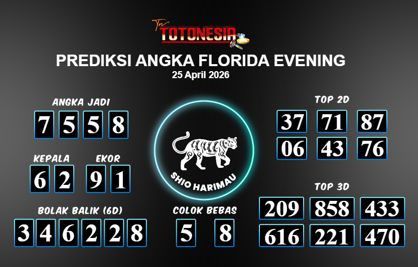 Toto Nesia : Bocoran Prediksi Togel FLORIDA EVENING Tanggal 25 APRIL 2026