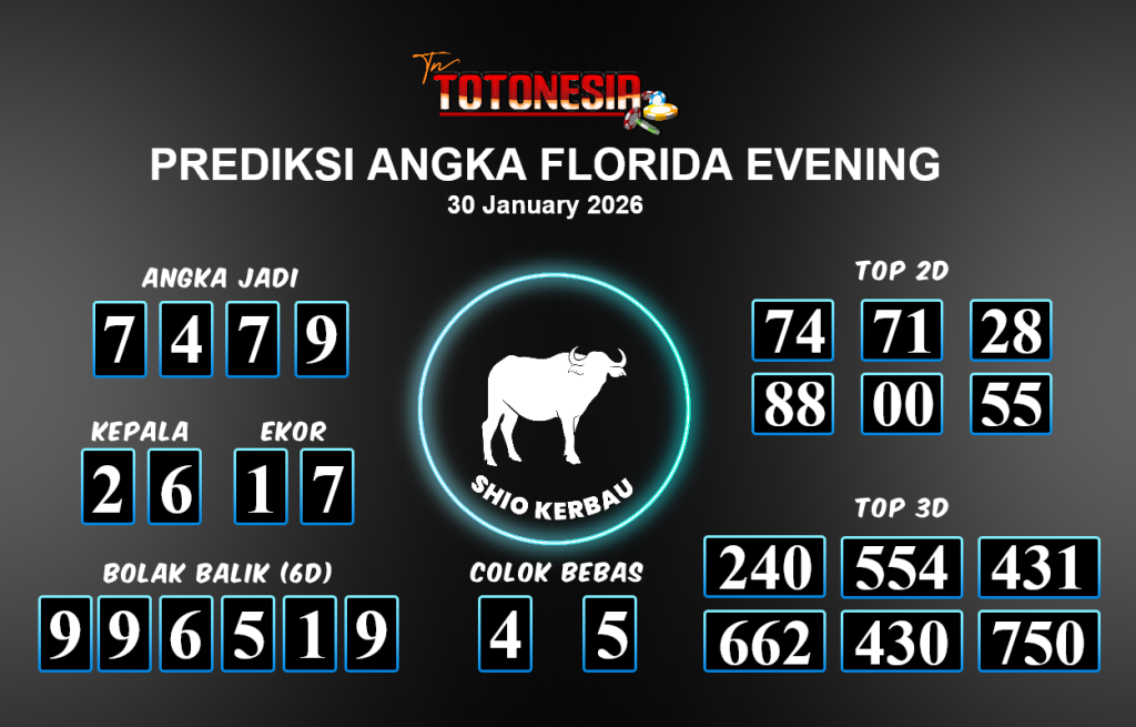 Prediksi FLORIDA EVENING adalah perhitungan nomor togel unggulan dari agen suhu togel yang menyajikan angka prediksi paling akurat, sehingga memberikan banyak keuntungan saat bermain di pasar togel FLORIDA EVENING. TotoNesia adalah prediksi dengan rasio kemenangan tertinggi di Indonesia. Sebagai penyedia togel yang dapat dipercaya, kami bertekad untuk memberikan ramalan togel yang handal dengan hadiah terbesarnya. Maka dari itu, jangan sampai terlewatkan prediksi bandar togel dengan hadiah terbanyak bet 100 dari pasar togel terbaik FLORIDA EVENING Daftar sekarang juga di bandar.