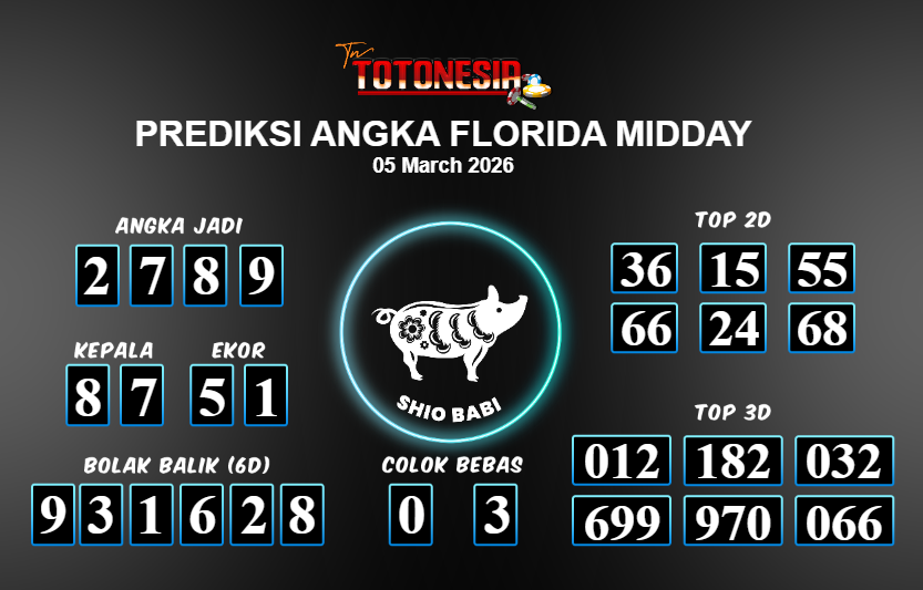 Toto Nesia : Bocoran Prediksi Togel FLORIDA MIDDAY Tanggal 05 MARET 2026