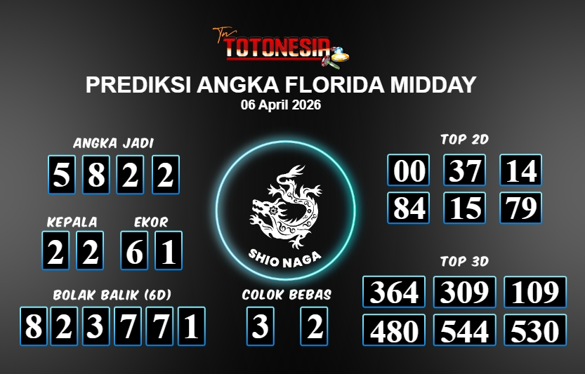 Prediksi FLORIDA MIDDAY adalah perhitungan nomor togel unggulan dari agen suhu togel yang menyajikan angka prediksi paling akurat, sehingga memberikan banyak keuntungan saat bermain di pasar togel FLORIDA MIDDAY . TotoNesia adalah prediksi dengan rasio kemenangan tertinggi di Indonesia. Sebagai penyedia togel yang dapat dipercaya, kami bertekad untuk memberikan ramalan togel yang handal dengan hadiah terbesarnya. Maka dari itu, jangan sampai terlewatkan prediksi bandar togel dengan hadiah terbanyak bet 100 dari pasar togel terbaik FLORIDA MIDDAY Daftar sekarang juga di bandar.