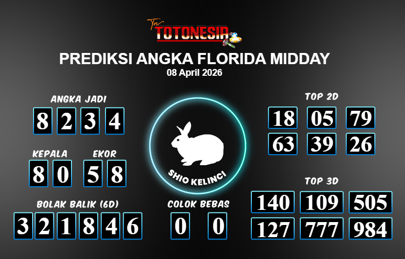 Prediksi FLORIDA MIDDAY adalah perhitungan nomor togel unggulan dari agen suhu togel yang menyajikan angka prediksi paling akurat, sehingga memberikan banyak keuntungan saat bermain di pasar togel FLORIDA MIDDAY . TotoNesia adalah prediksi dengan rasio kemenangan tertinggi di Indonesia. Sebagai penyedia togel yang dapat dipercaya, kami bertekad untuk memberikan ramalan togel yang handal dengan hadiah terbesarnya. Maka dari itu, jangan sampai terlewatkan prediksi bandar togel dengan hadiah terbanyak bet 100 dari pasar togel terbaik FLORIDA MIDDAY Daftar sekarang juga di bandar.