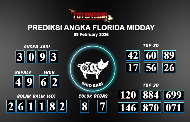 Toto Nesia : Bocoran Prediksi Togel FLORIDA MIDDAY Tanggal 09 FEBUARI 2026