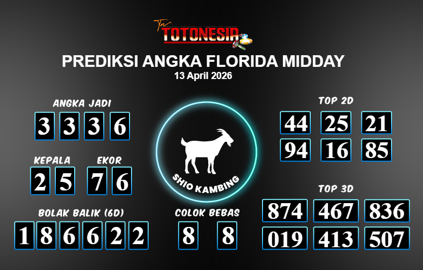Toto Nesia : Bocoran Prediksi Togel FLORIDA MIDDAY Tanggal 13 APRIL 2026