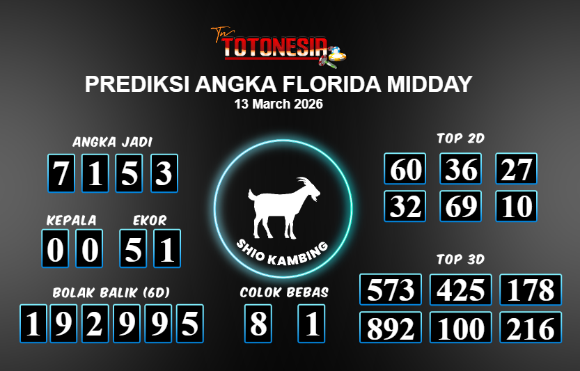 Prediksi FLORIDA MIDDAY adalah perhitungan nomor togel unggulan dari agen suhu togel yang menyajikan angka prediksi paling akurat, sehingga memberikan banyak keuntungan saat bermain di pasar togel FLORIDA MIDDAY . TotoNesia adalah prediksi dengan rasio kemenangan tertinggi di Indonesia. Sebagai penyedia togel yang dapat dipercaya, kami bertekad untuk memberikan ramalan togel yang handal dengan hadiah terbesarnya. Maka dari itu, jangan sampai terlewatkan prediksi bandar togel dengan hadiah terbanyak bet 100 dari pasar togel terbaik FLORIDA MIDDAY Daftar sekarang juga di bandar.
