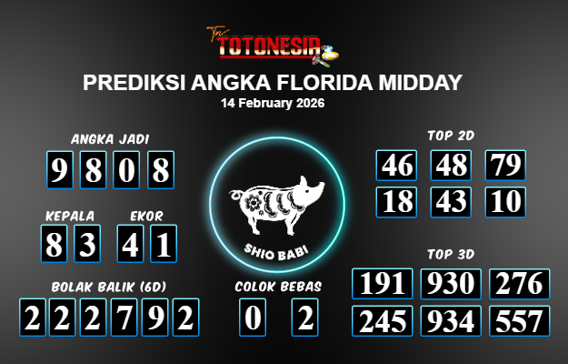 Toto Nesia : Bocoran Prediksi Togel FLORIDA MIDDAY Tanggal 14 FEBUARI 2026