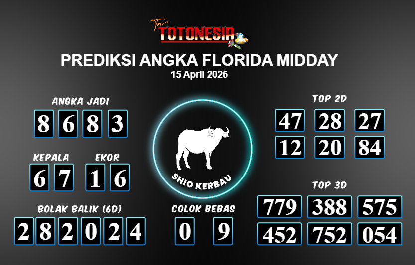 Prediksi FLORIDA MIDDAY adalah perhitungan nomor togel unggulan dari agen suhu togel yang menyajikan angka prediksi paling akurat, sehingga memberikan banyak keuntungan saat bermain di pasar togel FLORIDA MIDDAY . TotoNesia adalah prediksi dengan rasio kemenangan tertinggi di Indonesia. Sebagai penyedia togel yang dapat dipercaya, kami bertekad untuk memberikan ramalan togel yang handal dengan hadiah terbesarnya. Maka dari itu, jangan sampai terlewatkan prediksi bandar togel dengan hadiah terbanyak bet 100 dari pasar togel terbaik FLORIDA MIDDAY Daftar sekarang juga di bandar.
