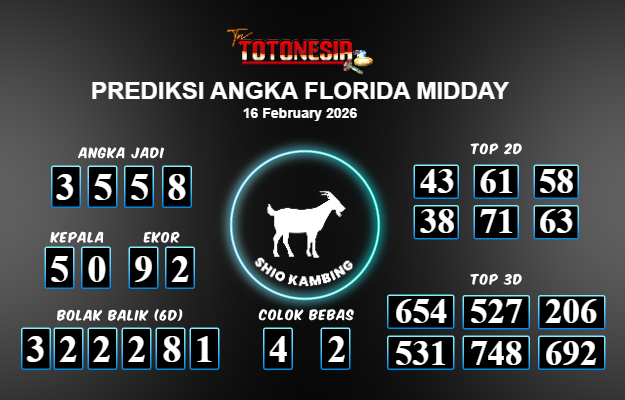 Toto Nesia : Bocoran Prediksi Togel FLORIDA MIDDAY Tanggal 16 FEBUARI 2026