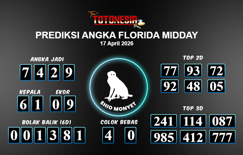 Prediksi FLORIDA MIDDAY adalah perhitungan nomor togel unggulan dari agen suhu togel yang menyajikan angka prediksi paling akurat, sehingga memberikan banyak keuntungan saat bermain di pasar togel FLORIDA MIDDAY . TotoNesia adalah prediksi dengan rasio kemenangan tertinggi di Indonesia. Sebagai penyedia togel yang dapat dipercaya, kami bertekad untuk memberikan ramalan togel yang handal dengan hadiah terbesarnya. Maka dari itu, jangan sampai terlewatkan prediksi bandar togel dengan hadiah terbanyak bet 100 dari pasar togel terbaik FLORIDA MIDDAY Daftar sekarang juga di bandar.