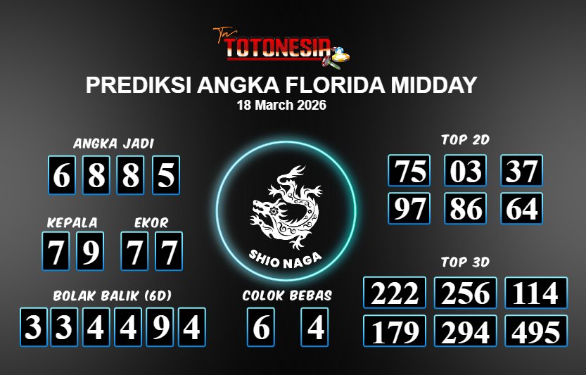 Prediksi FLORIDA MIDDAY adalah perhitungan nomor togel unggulan dari agen suhu togel yang menyajikan angka prediksi paling akurat, sehingga memberikan banyak keuntungan saat bermain di pasar togel FLORIDA MIDDAY . TotoNesia adalah prediksi dengan rasio kemenangan tertinggi di Indonesia. Sebagai penyedia togel yang dapat dipercaya, kami bertekad untuk memberikan ramalan togel yang handal dengan hadiah terbesarnya. Maka dari itu, jangan sampai terlewatkan prediksi bandar togel dengan hadiah terbanyak bet 100 dari pasar togel terbaik FLORIDA MIDDAY Daftar sekarang juga di bandar.