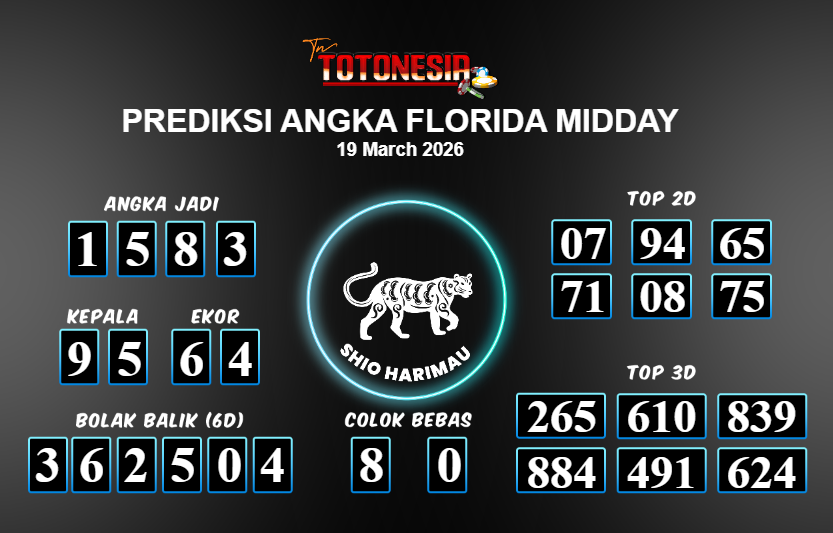 Prediksi FLORIDA MIDDAY adalah perhitungan nomor togel unggulan dari agen suhu togel yang menyajikan angka prediksi paling akurat, sehingga memberikan banyak keuntungan saat bermain di pasar togel FLORIDA MIDDAY . TotoNesia adalah prediksi dengan rasio kemenangan tertinggi di Indonesia. Sebagai penyedia togel yang dapat dipercaya, kami bertekad untuk memberikan ramalan togel yang handal dengan hadiah terbesarnya. Maka dari itu, jangan sampai terlewatkan prediksi bandar togel dengan hadiah terbanyak bet 100 dari pasar togel terbaik FLORIDA MIDDAY Daftar sekarang juga di bandar.