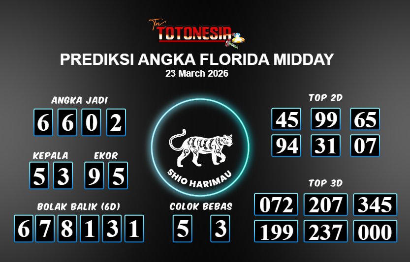 Prediksi FLORIDA MIDDAY adalah perhitungan nomor togel unggulan dari agen suhu togel yang menyajikan angka prediksi paling akurat, sehingga memberikan banyak keuntungan saat bermain di pasar togel FLORIDA MIDDAY . TotoNesia adalah prediksi dengan rasio kemenangan tertinggi di Indonesia. Sebagai penyedia togel yang dapat dipercaya, kami bertekad untuk memberikan ramalan togel yang handal dengan hadiah terbesarnya. Maka dari itu, jangan sampai terlewatkan prediksi bandar togel dengan hadiah terbanyak bet 100 dari pasar togel terbaik FLORIDA MIDDAY Daftar sekarang juga di bandar.