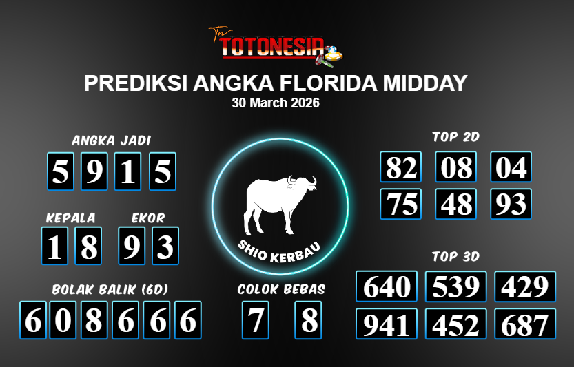 Prediksi FLORIDA MIDDAY adalah perhitungan nomor togel unggulan dari agen suhu togel yang menyajikan angka prediksi paling akurat, sehingga memberikan banyak keuntungan saat bermain di pasar togel FLORIDA MIDDAY . TotoNesia adalah prediksi dengan rasio kemenangan tertinggi di Indonesia. Sebagai penyedia togel yang dapat dipercaya, kami bertekad untuk memberikan ramalan togel yang handal dengan hadiah terbesarnya. Maka dari itu, jangan sampai terlewatkan prediksi bandar togel dengan hadiah terbanyak bet 100 dari pasar togel terbaik FLORIDA MIDDAY Daftar sekarang juga di bandar.