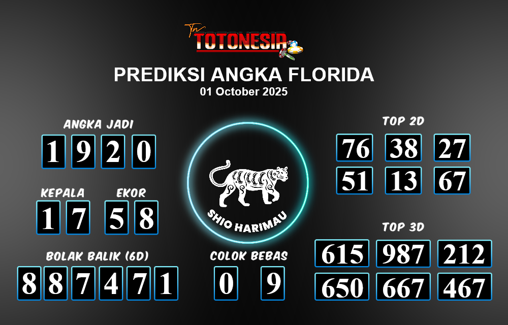 Toto Nesia : Bocoran Prediksi Togel FLORIDA Tanggal 01 OKTOBER 2025