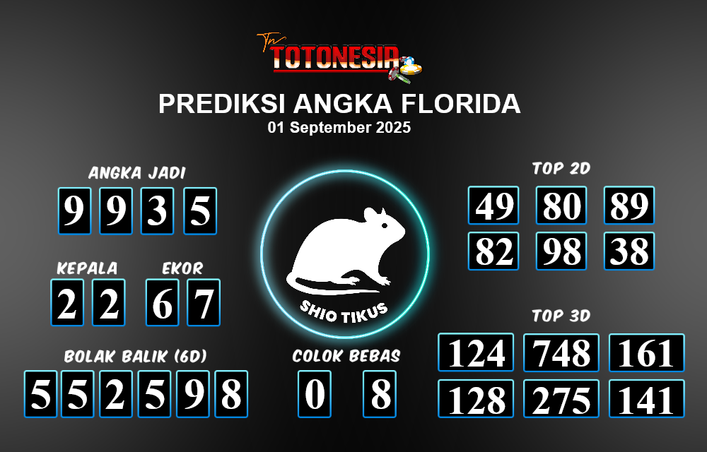 Toto Nesia : Bocoran Prediksi Togel FLORIDA Tanggal 01 SEPTEMBER 2025
