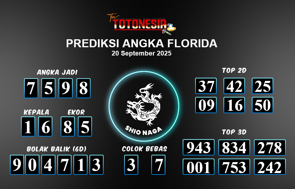 Toto Nesia : Bocoran Prediksi Togel FLORIDA Tanggal 20 SEPTEMBER 2025