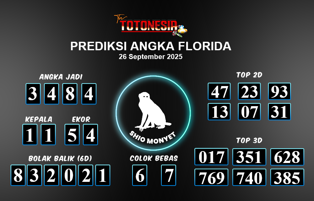 Toto Nesia : Bocoran Prediksi Togel FLORIDA Tanggal 26 SEPTEMBER 2025