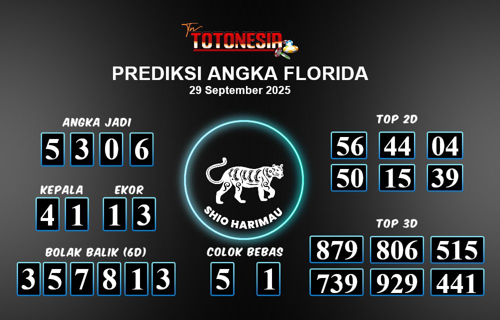 Toto Nesia : Bocoran Prediksi Togel FLORIDA Tanggal 29 SEPTEMBER 2025