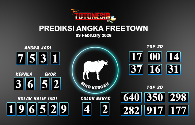 Toto Nesia : Bocoran Prediksi Togel FREETOWN Tanggal 09 FEBUARI 2026