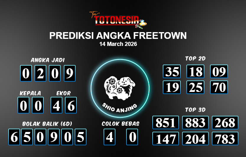 Toto Nesia : Bocoran Prediksi Togel FREETOWN Tanggal 14 MARET 2026