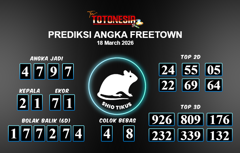 Toto Nesia : Bocoran Prediksi Togel FREETOWN Tanggal 18 MARET 2026