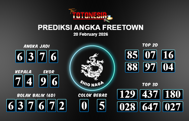 Toto Nesia : Bocoran Prediksi Togel FREETOWN Tanggal 20 FEBUARI 2026