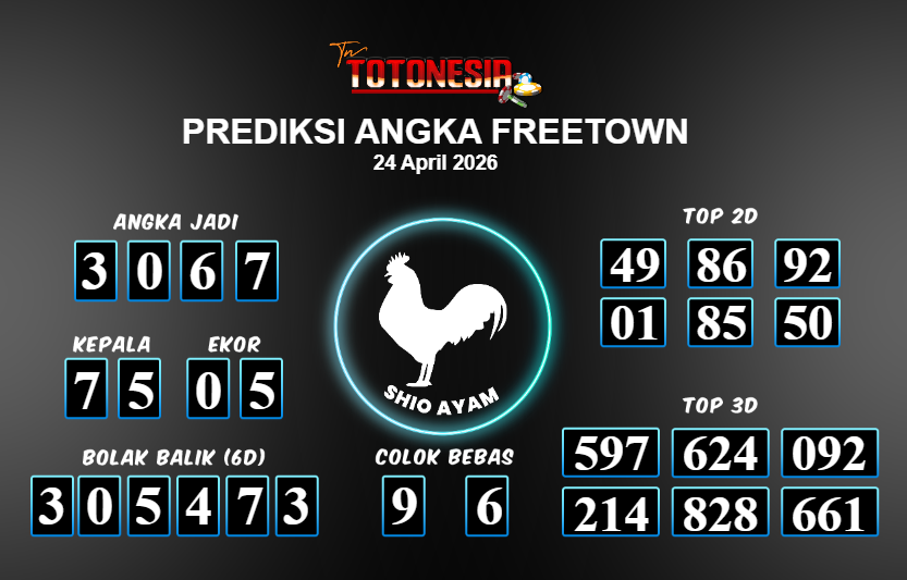 Toto Nesia : Bocoran Prediksi Togel FREETOWN Tanggal 24 APRIL 2026