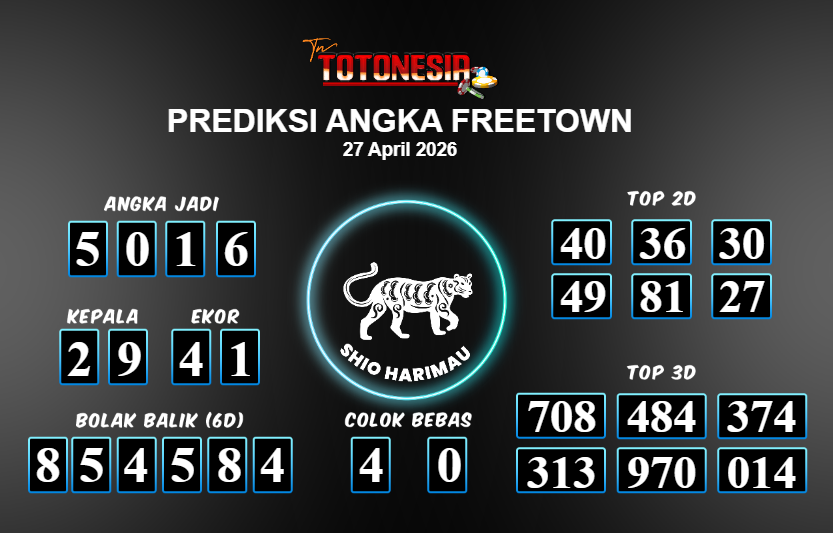 Toto Nesia : Bocoran Prediksi Togel FREETOWN Tanggal 27 APRIL 2026