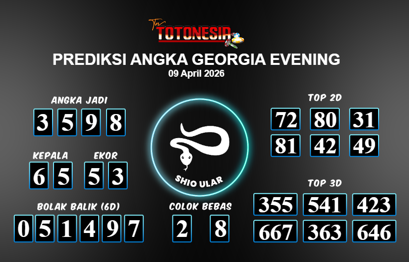 Toto Nesia : Bocoran Prediksi Togel GEORGIA EVENING Tanggal 09 APRIL 2026