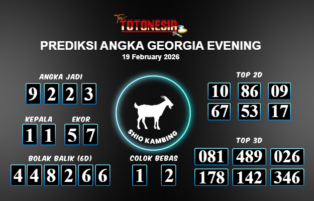 Toto Nesia : Bocoran Prediksi Togel GEORGIA EVENING Tanggal 19 FEBUARI 2026