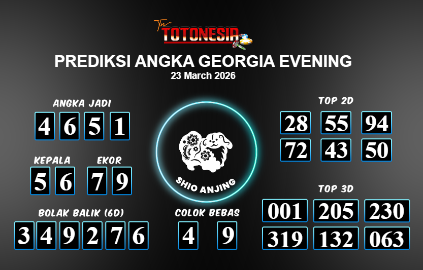 Toto Nesia : Bocoran Prediksi Togel GEORGIA EVENING Tanggal 23 MARET 2026