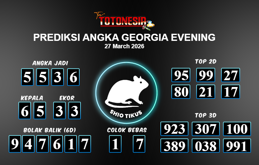 Toto Nesia : Bocoran Prediksi Togel GEORGIA EVENING Tanggal 27 MARET 2026