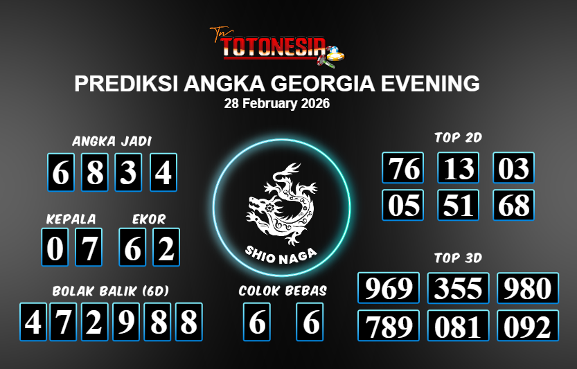 Toto Nesia : Bocoran Prediksi Togel GEORGIA EVENING Tanggal 28 FEBUARI 2026