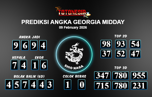 Toto Nesia : Bocoran Prediksi Togel GEORGIA MIDDAY Tanggal 09 FEBUARI 2026