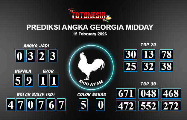 Toto Nesia : Bocoran Prediksi Togel GEORGIA MIDDAY Tanggal 12 FEBUARI 2026