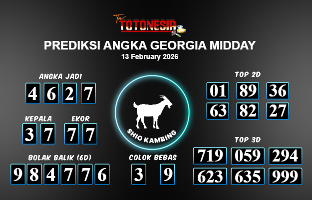 Toto Nesia : Bocoran Prediksi Togel GEORGIA MIDDAY Tanggal 13 FEBUARI 2026