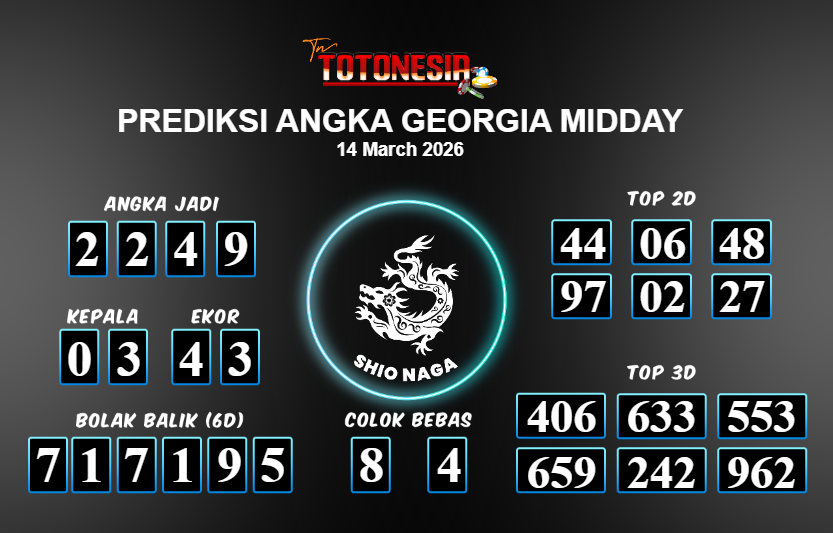 Toto Nesia : Bocoran Prediksi Togel GEORGIA MIDDAY Tanggal 14 MARET 2026