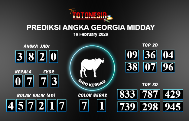 Toto Nesia : Bocoran Prediksi Togel GEORGIA MIDDAY Tanggal 16 FEBUARI 2026