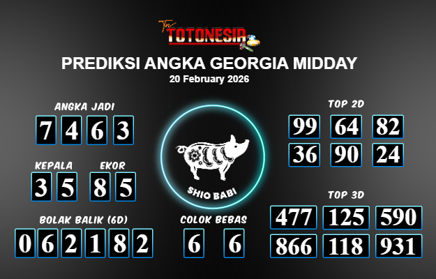 Toto Nesia : Bocoran Prediksi Togel GEORGIA MIDDAY Tanggal 20 FEBUARI 2026