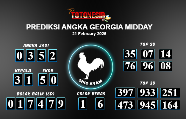 Toto Nesia : Bocoran Prediksi Togel GEORGIA MIDDAY Tanggal 21 FEBUARI 2026