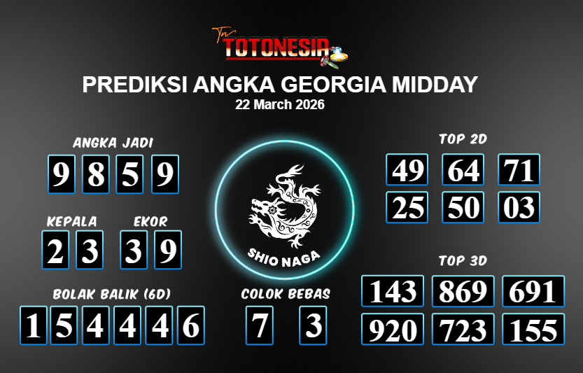 Toto Nesia : Bocoran Prediksi Togel GEORGIA MIDDAY Tanggal 22 MARET 2026