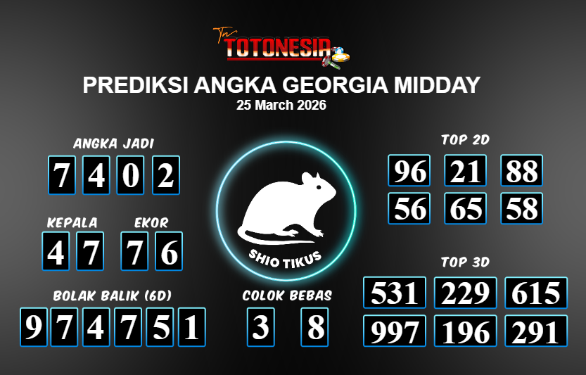 Toto Nesia : Bocoran Prediksi Togel GEORGIA MIDDAY Tanggal 25 MARET 2026