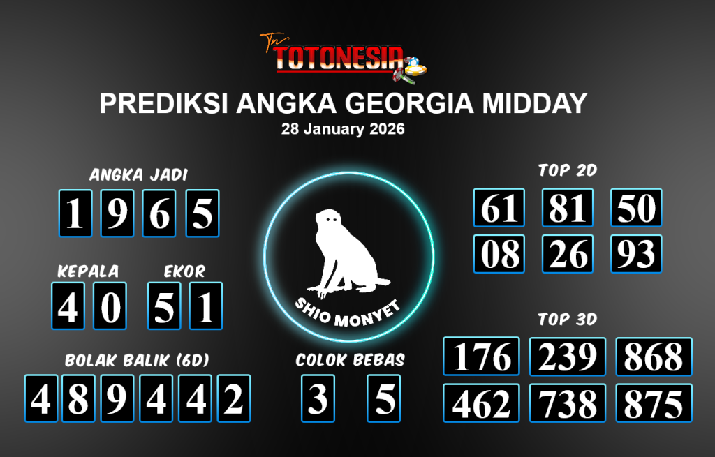 Prediksi GEORGIA MIDDAY adalah perhitungan nomor togel unggulan dari agen suhu togel yang menyajikan angka prediksi paling akurat, sehingga memberikan banyak keuntungan saat bermain di pasar togel GEORGIA MIDDAY . TotoNesia adalah prediksi dengan rasio kemenangan tertinggi di Indonesia. Sebagai penyedia togel yang dapat dipercaya, kami bertekad untuk memberikan ramalan togel yang handal dengan hadiah terbesarnya. Maka dari itu, jangan sampai terlewatkan prediksi bandar togel dengan hadiah terbanyak bet 100 dari pasar togel terbaik GEORGIA MIDDAY daftar sekarang juga di bandar.