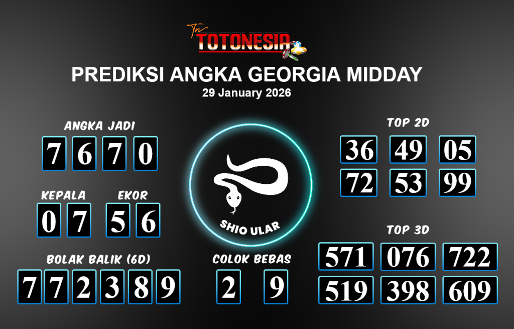 Toto Nesia : Bocoran Prediksi Togel GEORGIA MIDDAY Tanggal 29 JANUARI 2026