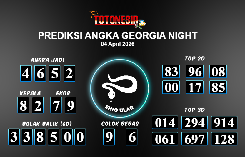 Toto Nesia : Bocoran Prediksi Togel GEORGIA NIGHT Tanggal 04 APRIL 2026
