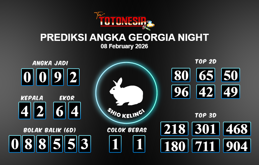 Toto Nesia : Bocoran Prediksi Togel GEORGIA NIGHT Tanggal 08 FEBUARI 2026